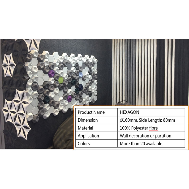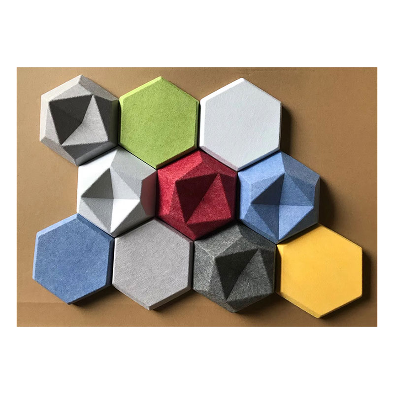 A PET 3D akusztikus panelek 100% poliészterből készülnek tűlyukasztással. A gyártási folyamat teljesen fizikai és környezetbarát, nincs szennyvíz, károsanyag-kibocsátás, hulladék. nincs ragasztó, az akusztikus panel porózus jellege miatt hangelnyelő és hőszigetelő, nem mérgező, nem allergén, nem irritáló, nem tartalmaz formaldehid kötőanyagot és magas NRC: 0,85